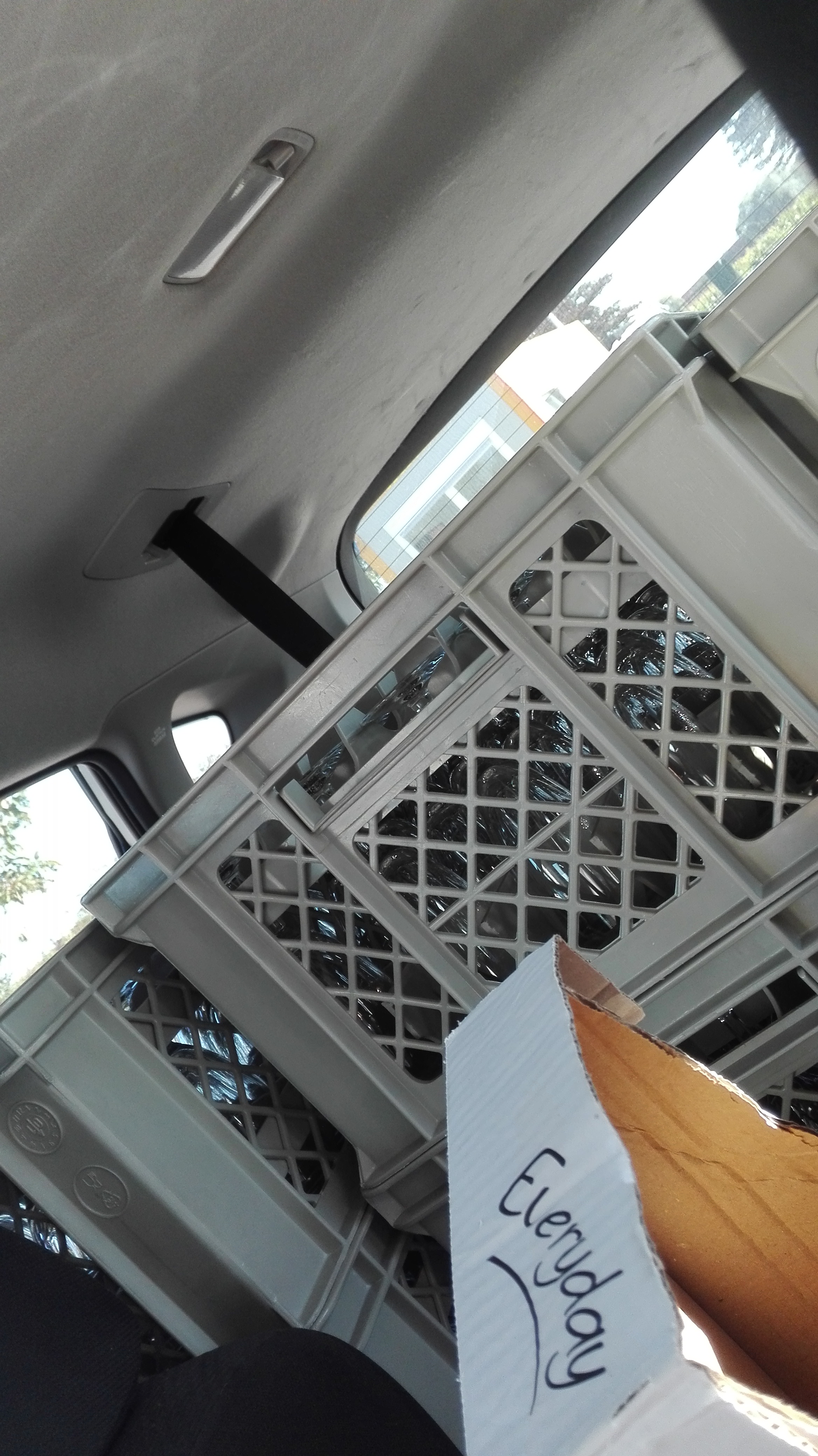 500 cava-glazen vervoeren in je auto, bij elke bump in de weg horen hoe de hele boel klingelt en kluttert in de koffer