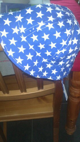 Een maf zonnehoedje voor Ilja. Nu nog zon. En voor hem een smallere kop, want het past niet. Mijn hoofdomtrekinschattingsvermogen is niet zo denderend blijkbaar. Ik geef het weg. Aan wie???