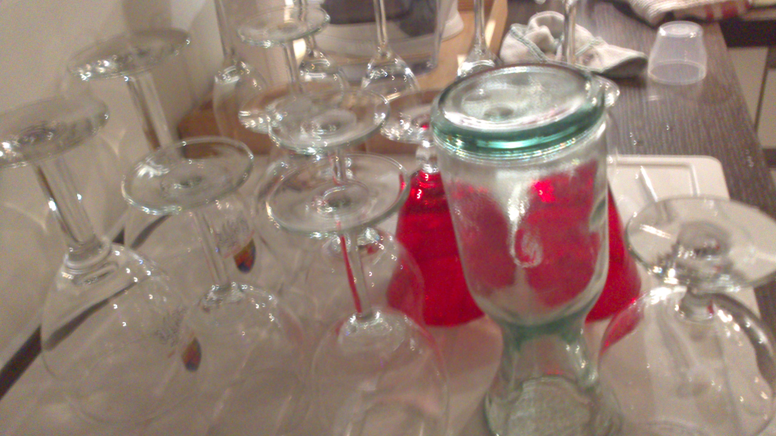 15u30: Als de gasten zijn aangekomen snijden we de bananentaart en de flantaart aan.