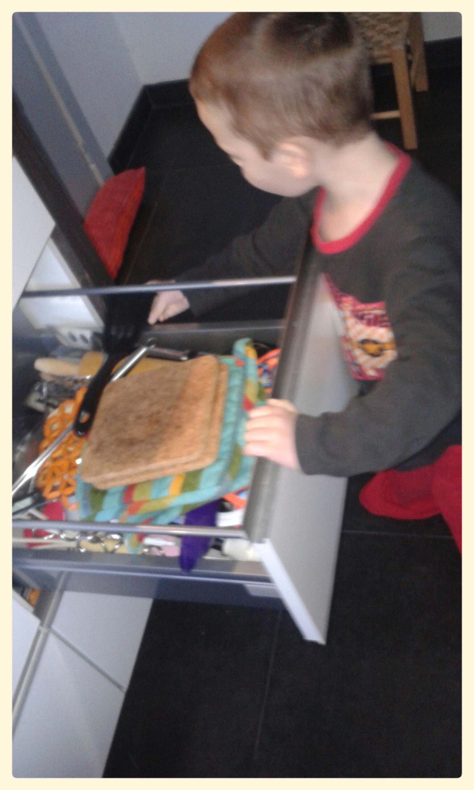 Na het ontbijt -als Pieter vertrokken is op zijn mountainbikeritje- start ik met het bakken van twee taarten. Er is deze middag nog een laattijdig feestje voor Ilja’s verjaardag. (de koffietas blijft in de buurt, ik heb veel te weinig gehad, veel te weinig zeg ik u!)