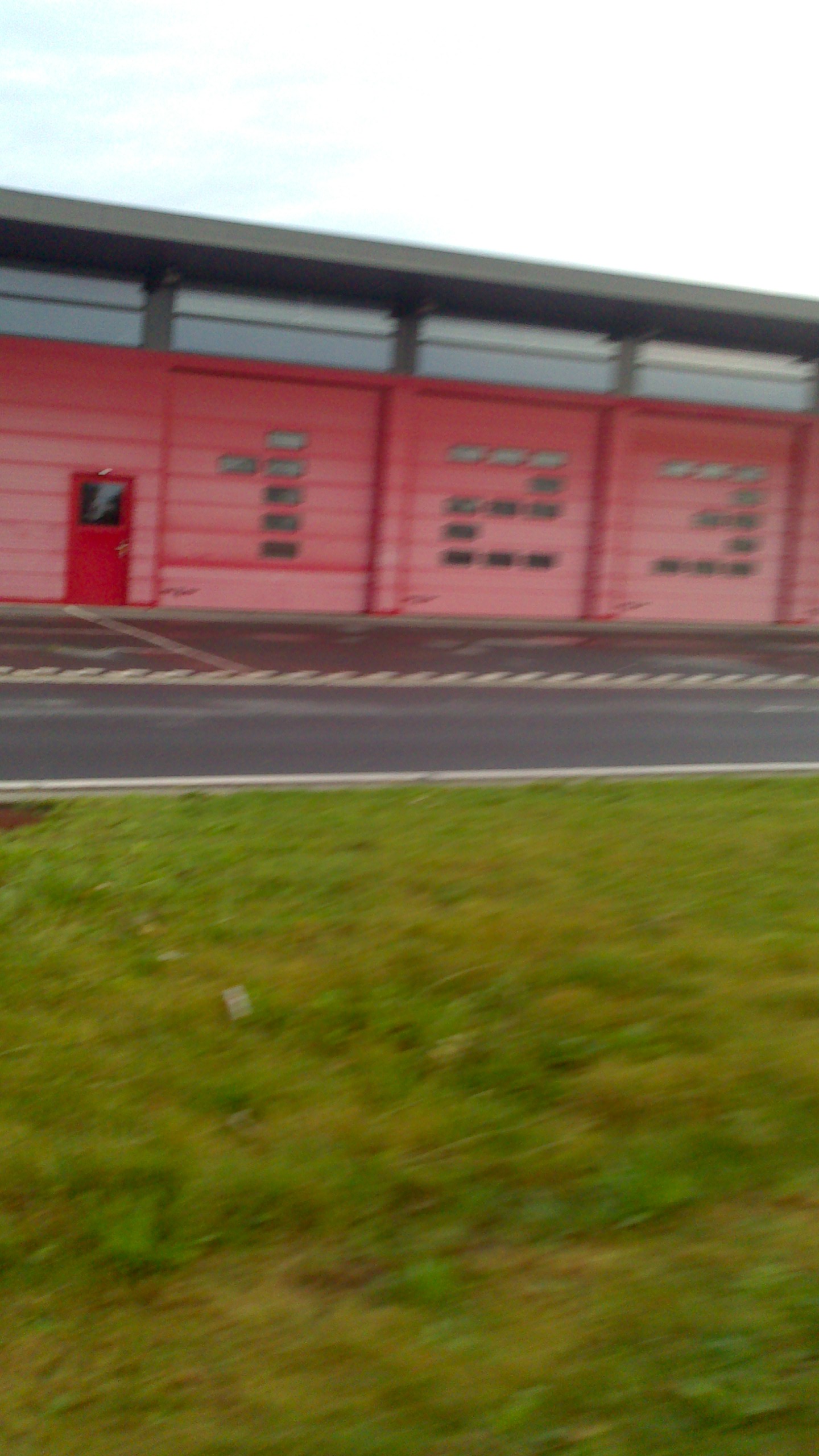Na 5 km ben ik terug bij de brandweer. Het heeft echt heel lang geduurd voor ik doorhad dat de ramen tegelijkertijd ook de nummers van de garage waren. Van ver is het echter overduidelijk. Op de foto ernaast ziet het eruit alsof ik onderweg een tand ben verloren. Ik hoop eerder op 500 gram.
