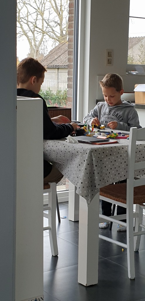 Het heeft lang geduurd eer we de beslissing genomen hebben om twee kinderen te krijgen. Toen ik zes jaar geleden mijn tweede zwangerschap aankondigde waren de reacties dan ook heel uiteenlopend. Van “ah toch?” naar “blij dat het toch nog gelukt is!” tot “eindelijk zeg!”. We wilden vooral een doordachte keuze maken en gingen er niet vanuit dat twee kinderen krijgen de norm en dus bijgevolg evident is. Ik vind dat namelijk niet evident. Net zoals ik kinderen krijgen tout court niet evident vind. De beslissing om toch een tweede kindje proberen te krijgen is dan ook niet over één nacht ijs gegaan. Het leeftijdsverschil van vier jaar is lang een issue geweest in de band tussen de jongens. Nu ze 5 en 9 zijn is dat verschil nog steeds groot maar toch klikt het momenteel heel goed tussen mijn zoons en daar heeft de coronacrisis wel degelijk een aandeel in gehad. Hun verschillende karakters botsen wel eens maar mijn hart smelt als ze elkaar knuffelen zonder meer. Als ik hen -net zoals nu- aan het afmuizen ben terwijl ze tegen elkaar bezig zijn in hun spel.