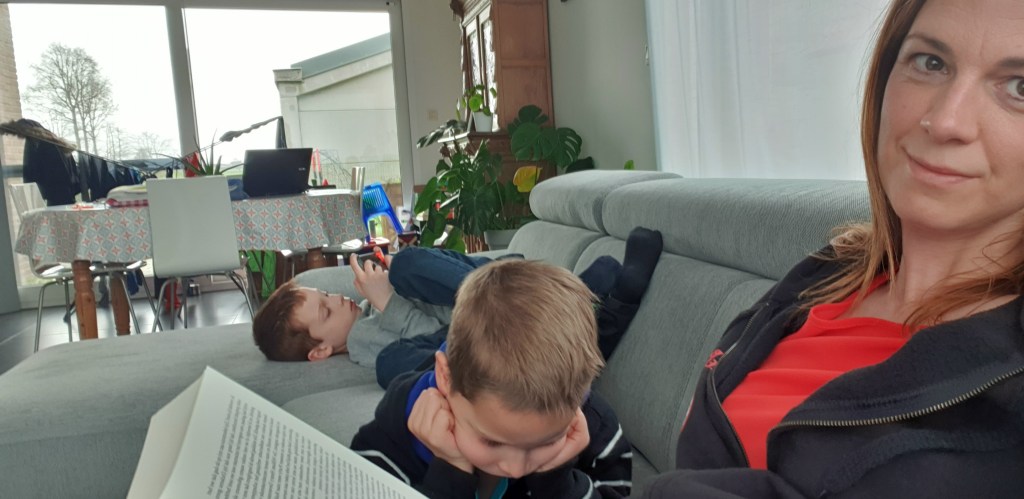 We slurpen elke twinkelende zonnestraal op deze week. Om te vermijden dat de kinderen vegeteren in de zetel gaan we dagelijks wandelen. Soms is dat de toer van 4,5 km naar “de platse” ofwel kiezen we om ons te verplaatsen. Zondag wandelden we een historische route in Mesen, zo’n 25 km hier vandaan. Educatie remember?